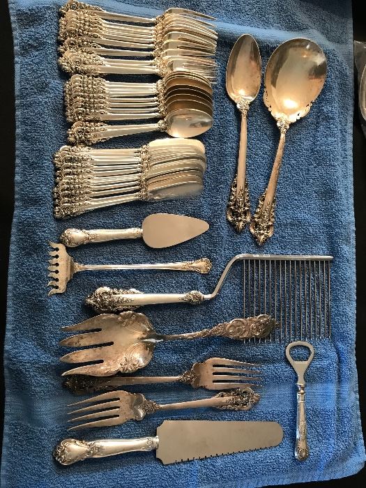 PINK LADY LIQUIDATION WILL BE IN WEST WINDSOR FOR A NICE TWO DAY SALE- STERLING SILVER & ANTIQUES: Contents to include but not limited to, please view all photos Thomasville Vintage upholstered club chairs Decorative Silk Flowers Mahogany End Table Decorative Prints Ridgeway Grandfather Clock Silver Plate Serving pieces Rowe Upholstered loveseat Pottery Barn Scroll Double Rod Lenox Waterford Mikasa Wedgewood Royal Aderly decorative flower piece The Country Store Telephone Chef Signed cookbooks Gold and Sterling Silver Jewelry Sterling Silver Casters Decorative Art Lamps Chef Jackets Mahogany Framed Beveled Oval Mirror Victorian Dining Room Suite Needlepoint Embroidered Upholstered Arm Chair...