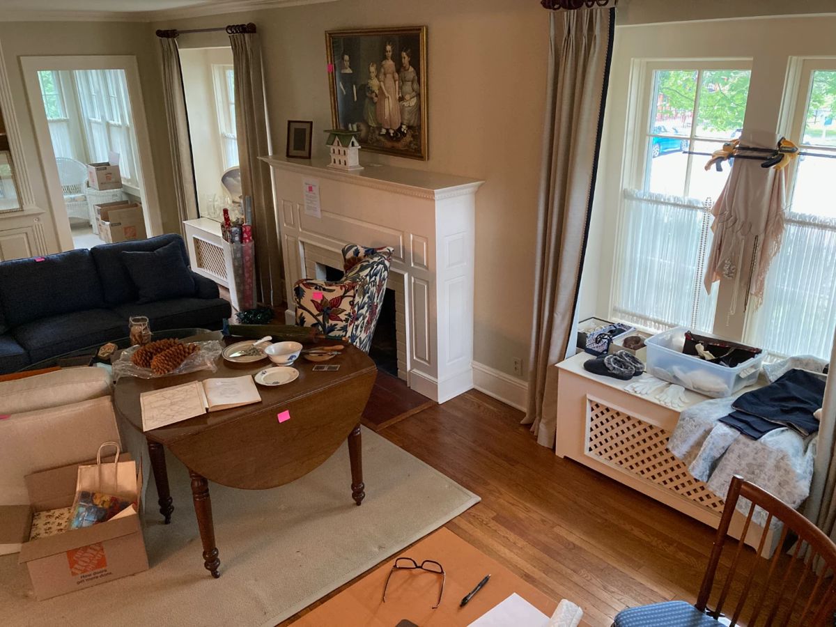 50 years of typical suburban residence stuff, including but not limited to: Multiple mint Kate Spade handbags MANY framed botanical prints MANY small and medium blue / white asian dises, plates, bowls, etc Lamps - asian ginger jar, vintage whiskey jug, etc Wicker furniture Baskets Kitchenware - mixing bowls, balloon whips, slicers, etc Jewelry - lots of pearls Women's cloths - mostly petite 6-8 Women's footwear - mostly 6.5-7 Sewing Cosmetics and cosmetic bags (only unused) Book about Westfield titled "The Olde Town, 1740-1800" - Vintage LPs - like "The Wall", "Physical Graffiti", Van Halen Tools like large mint Porter-Cable...