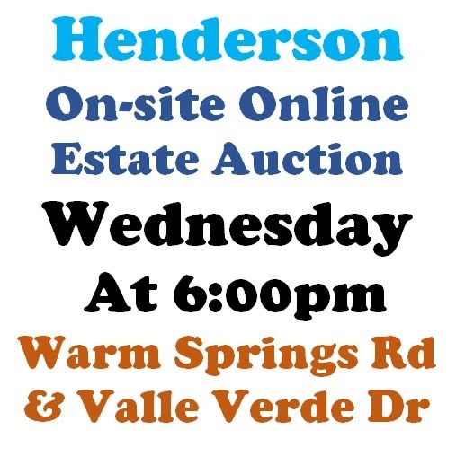 WARM SPRINGS & VALLE VERDE ESTATE ONLINE PUBLIC AUCTION (Near Warm Springs Rd & Valle Verde Dr) https://lasvegasauction.hibid.... A PREMIERE ESTATE SALES HOSTED BY CLARK COUNTY PUBLIC AUCTION WEDNESDAY, December 11th Starting at 6:00pm (6:00pm to 10:00pm) (Near Warm Springs Rd & Valle Verde Dr) ONLINE BIDDING ONLY - ONLINE AUCTION https://lasvegasauction.hibid.... Live Preview: WEDNESDAY, December 11th from 9:00am-3:00pm STOP BY AND PREVIEW SALE WEDNESDAY!! Text us Preview Day" at (702) 479-9710 to Request Preview Appointment & Address. (Near Warm Springs Rd & Valle Verde Dr) https://lasvegasauction.hibid.... Over 500+ Lots, - Like New Household Furniture, Tools, New Clothing, Home Decor,...