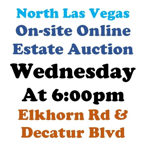 ELKHORN & DECATUR ESTATE ONLINE AUCTION (Near Elkhorn Rd & Decatur Blvd - 89131) https://lasvegasauction.hibid.... A STERLING ESTATE SALES AUCTION HOSTED BY CLARK COUNTY PUBLIC AUCTION Wednesday, December 17th at 6:00pm (6:00pm to 9:00pm) (Near Elkhorn Rd & Decatur Blvd - 89131) TIMED ONLINE BIDDING ONLY!!! https://lasvegasauction.hibid.... Live Preview: WEDNESDAY, December 17th from 9:00pm-3:00pm STOP BY AND PREVIEW SALE WEDNESDAY!! Text us Preview Day" at (702) 630-5357 to Request Preview Appointment & Address. (Near Elkhorn Rd & Decatur Blvd - 89131) PARTIAL LIST: Antique Furniture, Sterling Silver Bracelets & Necklaces, Electric Tools, Handmade Pottery Bowls, TV's, Garden Fountain, Metal Storage...