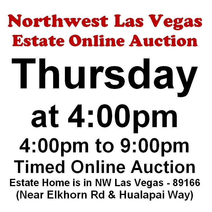NORTHWEST LAS VEGAS ESTATE ONLINE AUCTION Estate Home is in Northwest Las Vegas - 89166 (Near Elkhorn Rd & Hualapai Way) https://lasvegasauction.hibid.... A STERLING ESTATE SALES AUCTION HOSTED BY CLARK COUNTY PUBLIC AUCTION Thursday, February 5th at 4:00pm (4:00pm to 9:00pm) (Near Elkhorn Rd & Hualapai Way) TIMED ONLINE AUCTION WITH DUDLEY!!! https://lasvegasauction.hibid.... Live Preview: THURSDAY, February 5th from 9:00pm-3:00pm STOP BY AND PREVIEW SALE THURSDAY!! Text us Preview Day" at (702) 630-5357 to Request Preview Appointment & Address. (Near Elkhorn Rd & Hualapai Way) PARTIAL LIST: Furniture, Patio Furniture & Pottery, Ceramic & Fine Porcelain Items, TV's, Tools, Appliances,...