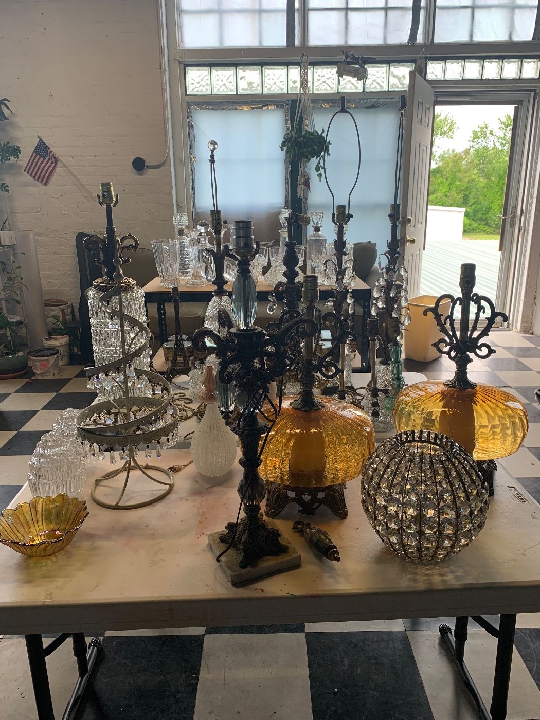 Vintage Chandeliers, glassware, jewelry boxes, lamps, housewares, plants, art supplies and more