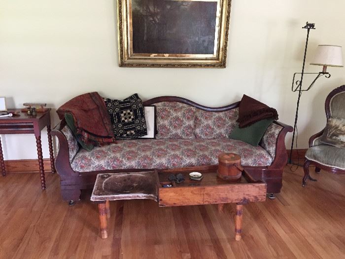 House Filled with Nice Variety of Antiques, Collectibles, Furniture, Books, Records, Household, Garden Tools, but especially a Weaver's Delight- Weaver Tables and Floor Looms, Spinning Wheels, Yarn Winder, Wool, Yarn, Threads, Supplies and Tools! Room is Filled will all kinds of Weaving Supplies, Looms, Sewing too! You will love it! Antique Edison Cylinder Phonograph Model H, 4 Minute, w/ Horn-excellent condition! Also, Edison Amberol Cylinder Photograph Records (over 100), Antique Furniture, Marble top Dressers, Mahogany Sleigh Beds, large Antique Framed Painting with Sheep, StereoView Card Collection and Viewer- Stereoview Cards mostly early Saratoga Springs (over 200) also Watkins Glen, Cayuga...