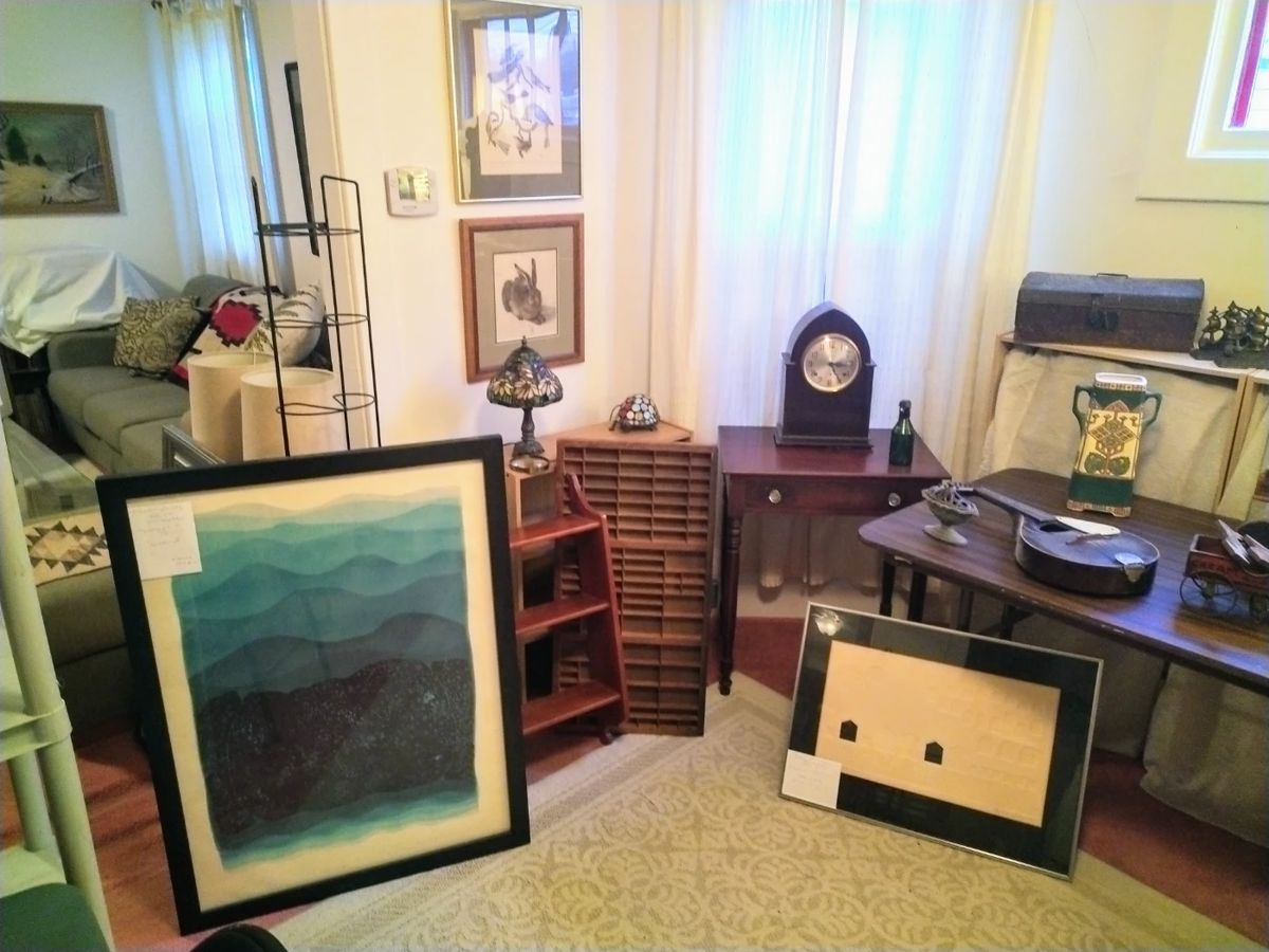 LARGE ESTATE SALE. 3/21 - 3/24. 9-4PM. BINGHAMTON, NY 13903. ADDRESS TO BE ANNOUNCED 3/20 To settle the Estate, items include: Antiques, Home Furnishings, Artwork incl. Impressionist & Expressionist Artists Matta, Moti, Tantra, French, Beutlick, Tornero signed Lithographs & more, Pottery: McCoy, Weller, Yellow are, etc., Antiques: Photos, Prints, Clocks, Victrola VI Phonograph & Records, Cast Iron Cookware, Mahogany 19th century Pembroke Table, Tin Dome Top Trunk, Reverse Painted Mirrors, Navajo throws, Hitchcock Chair, Coat Tree, Wood & Tin Toys, 1950 Red GE Radio. Qty. Of Kitchenware incl: Kitchenaid Mixer, Crock Pots, Sm. Counter Appliances, QUALITY Pots & Pans, 6...