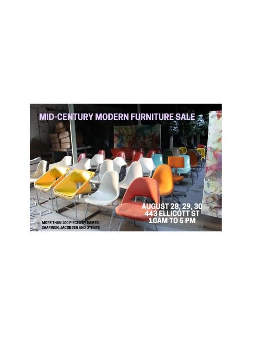 A sale of more than 100 mid-century furniture pieces, including chairs, tables, desks, cabinets and dressers. Leading designers including Eames, Saarinen, Jacobsen, Knoll and McCobb will be represented, with more than 30 pieces by Eames alone. More than 200 fine art books by artists including Louise Nevelson, Anselm Kiefer, Willem de Kooning, Jasper Johns and countless others will also be offered for sale. In addition to the designer pieces, this sale will feature a large bargain-hunters section with more than a hundred deeply discounted chairs, tables, dressers, cabinets, baskets, glassware as well as hundreds of discounted books. This is an...
