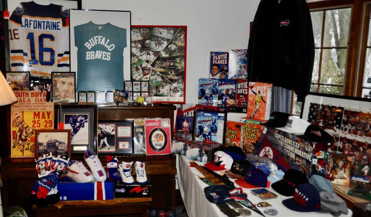 This is Grandmother’s attic collectibles along with years of sport memorabilia! Buffalo Bills and Sabres t-shirts, jackets, sweatshirts, hats, autographs, hockey sticks, trading cards, starting line up, posters, concert t-shirts,Pokemon, toys and games, oak curio, antique dressers and chests, fine china and crystal, vintage Christmas, jewelry, afghans, vintage clothing, early kitchenware, primitives, dollhouse, tools and loads of miscellaneous.