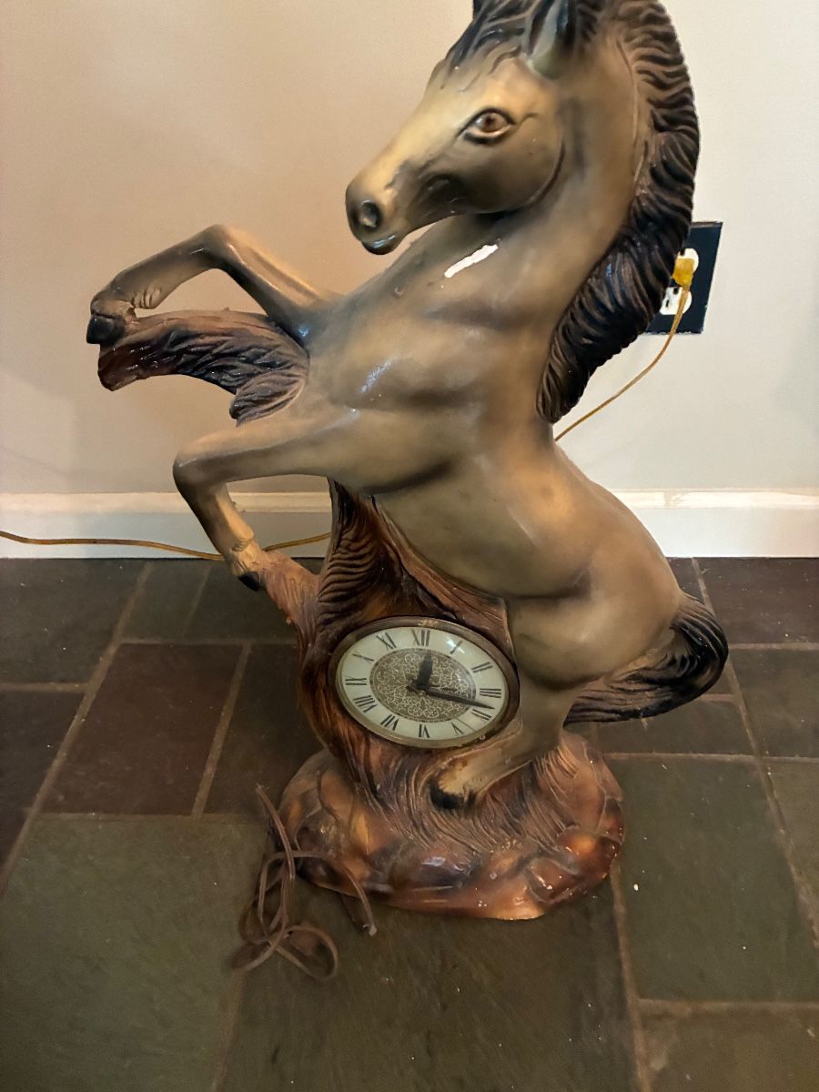 Sign-up sheet will be out, and address revealed on Wednesday after 2pm There are so many fantastic finds at this Williamsville sale. There is something for everyone, the horse lover, the collector and the pool player. We have: Kasson pool table, in excellent condition, Belleek, Vintage chalkware/plaster Lanshire rearing stallion horse clock, Gone With The Wind style hurricane lamp, Bohemian amethyst cut-to- clear glass vases, dishes, glass, 1990s Buffalo Bills starter jacket, Flamboro Downs glasses with tray, Jewelry, Buffalo Pottery Fallowfield Hunt pitcher, Antique cabinetry, China cabinet, Dining room table, Kitchen table, Couch and oversized chair, Horse memorabilia-glassware, souvenirs, sculptural...