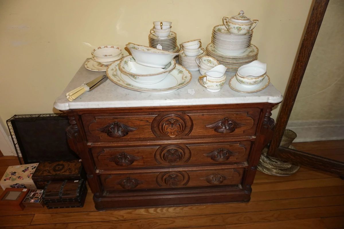 ESTATE SALE #1 104 Brantwood Rd. Snyder, NY 14226 (Off Main St.) Friday & Saturday April 3 & 4 9am-4pm SATURDAY IS THE FINAL DAY!! MOST ITEMS ARE NOW 1/3-1/2 OFF!! Quality Furniture, Antiques & Home Décor in Snyder! Antique Tiger Oak Claw foot library cabinet, Antique marble top chest with carved pulls, 18th century Hitchcock style chairs, 18th century child’s rocker with split weave seat, 1 & 2 drawer stands, Victorian settee, pair of upholstered chairs, roll arm upholstered sofa, pair of bleached oak bookcases, taller marble top washstand, oak washstand, caned seat rocker, Antique Victorian bed, Pine schoolmasters...