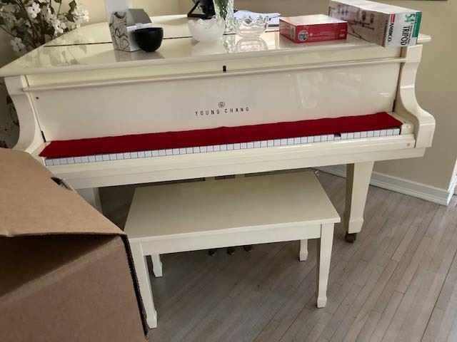 No one will be admitted without a mask and gloves Please bring your own shopping bags Please practice Social Distancing while on line. Thank you for you cooperation White lacquer Young Chang baby grand piano, Beautiful dining room set, leather nailhead sofa & love seat, wooden pig, pair of white tufted arm chairs, sofa, wing chair, coffee & end tables, Sleigh master bedroom set with armoire, dresser & mirror, tall chest of drawers & 2 nightstands, more bedroom sets, cheval mirror, rugs, desk, curio, tile top kitchen set, art, decorative accent pieces, Nordic Track elliptical, Pro Form stepper, 3 reclining...