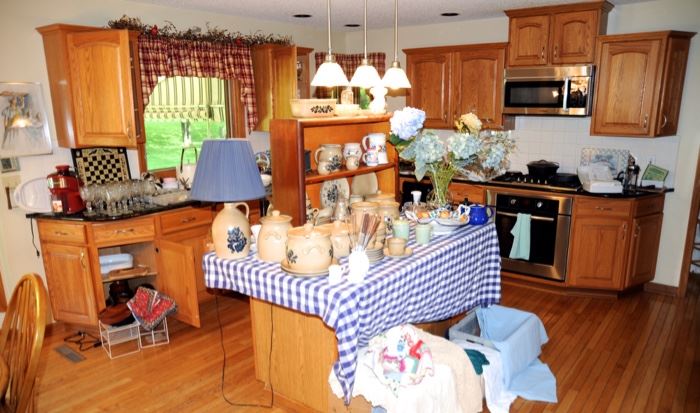 This lovely village home is furnished with quality antiques. Primitive pie safe and cupboards, Amish farm table, Victorian upholstered chairs and settee, Deacon bench, hall tree, Mission chairs, Victorian and Eastlake tables, oak side by side curiotary, mahogany dining set, Johnson Bros. Friendly Village china, Trish Romance, Thelma Winters and Michele Conley Vogel art, Oriental rugs, a vast library of children's books and more, games and toys, Fisher Price collector toys and vintage toys, 1918 Brunswick repro pool table, retro bar stools, quilts, designer clothing, wicker, Xbox, Gamecube and SEGA games, Matchbox, albums, holiday, Kimball piano, riding tractor and accessories,...