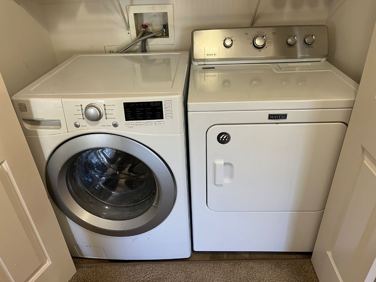 HIGHLIGHTS: Furniture: Lazy boy electric recliner Wood coffee & end table Wood couch with southwestern style upholstery Wooden armchair Lazy Boy recliner Lock Oak bedroom set, vanity, dress, end tables, queen, size, bedframe Wood book cases pair Cable spool table Wood dining room table Bunny Vaughn decorative stool Computer desk Queen size metal and wood post bedframe Appliances: Kenmore connect Front load washing machine Maytag dryer Kenmore 12 amp all floor vacuum Artwork: Víctor Delfín screen prints Leo Etherington screen print Nature photography in wood frames Art pottery plate by Hansen African style war shield Electronics & Media: Insignia 43”...