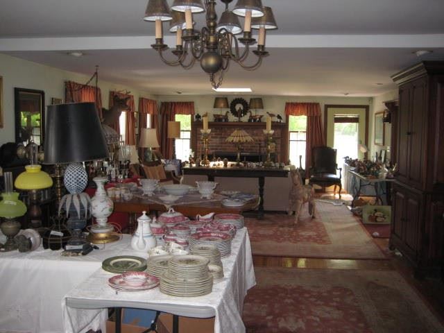 This house is packed with two lifetimes of collecting! Two full floors - first floor and full basement plus back yard - Largest collection of Candlesticks, candelabra and lighting fixtures! First floor has lots of small antiques - tables, lamps, decoys, collectable breakables, copper pots, pewter tankards, barware, kitchenware, multiple sets of flatware, multiple sets of fine china, decor items with Cats, dogs, chickens, roosters, birds, mounted Deer heads, owls, wrought iron decorative items, vintage chairs, vintage men's clothing, lots of original artwork - mostly all American, beautiful collection of ornate silverplate serving items, dining room table sets, several armoires,...