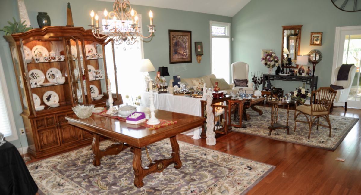Half Price Saturday! This beautiful patio home is full of high end furnishings along with signed art and collectibles. Ethan Allen, Bassett, Baker and Henredon upholstered sofas and chairs in excellent condition, Herschede Grandfather clock, Drexel dining room set, curio, custom provincial settees and occasional chairs with gorgeous upholstery. Oil paintings, ornate mirrors, Lladros, Copenhagen plates, fine crystal, Limoges, Spode, Waterford, Orrefors, Mid-Century Russell Wright dinnerware, sterling, Oriental rugs and runners, art glass, tea cart, quality kitchenware, lamps, stain glass windows, vintage bikes including Schwinn Wasp Paperboy Special, Roadmaster pre-war balloon tire model and Roadmaster Skyrider Deluxe, all in great...