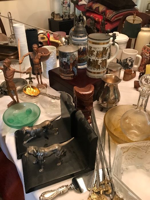 WORLD TRAVELERS ESTATE. THIS LOVELY HOME IS FILLED WITH 4 FLOORS OF ALL KINDS OF VINTAGE COLLECTIBLES AND LOTS OF ARTWORK THROUGHOUT. VINTAGE STEREOS,SPEAKERS, LAMPS, WING CHAIR, SLIPPER CHAIRS, RECLINER.MID CENTURY BEDROOM FURNITURE, HUMMELS, WATERFORD, LOTS OF RECORDS,BOOKS, DINING ROOM TABLE WITH 8 CHAIRS, CREDENZA.VINTAGE CAMERAS,SLIDES, PROJECTORS.LOTS OF MENS CLOTHING,TIES, BURBERRY COATS.SHOES. SILK RUGS,PRAYER RUG,TONS OF KITCHENWARE,WOOD BUTCHER BLOCK KITCHEN TABLE AND CHAIRS. LINENS, BARWARE, ASIAN POTTERY,MEN’S WATCHES,SOME COINS. THIS HOUSE IS LOADED BASEMENT AS WELL AS GARAGE. COME DIG !! ALL SALES ARE CASH ONLY AND FINAL WITH NO RETURNS,NO EXCHANGES,NO EXCEPTIONS! TAG SALES BY MICHELLE AND HOMEOWNER ARE...
