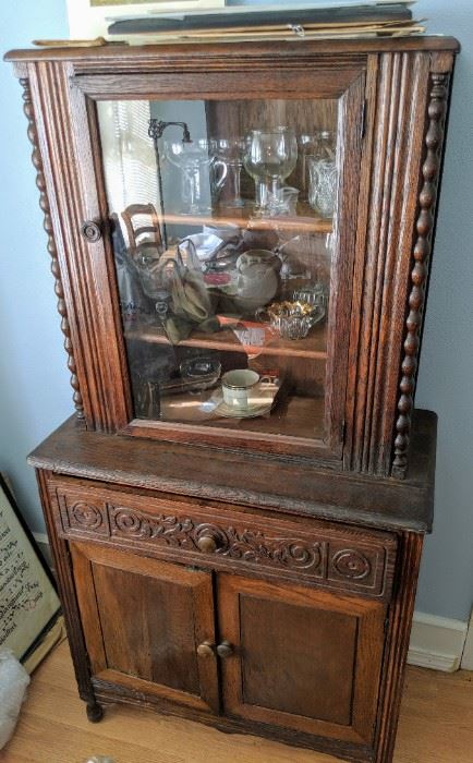 Loads of accumulation and something for everyone. Antique Oak Secretary Desk, Antique Dark Black Forest Style China Cabinet, Glassware, Antique Round Oak Dining Room Table w/leaf, Kitchenware, Vintage McCoy Pottery, Vintage Wedgwood Bone China Cups and Saucers, Vintage Milk Glass, Vintage Cut Glass, Vintage Coffee Table, Antique Coffee Table, Antique Hoosier Cabinets, Wedgwood Green Jasperware, 19th Century Oil Painting, Antique Grandfather Clock, Royal Daulton English Renaissance Fine Bone China, Vienna Woods Fine China, Vintage J & G Meakin Blue Nordic Fine China, A Pair of Art Deco Table Lamps, Vintage Clam Shell Chair, Vintage 1930's Deco Dresser, Vintage Salt and...