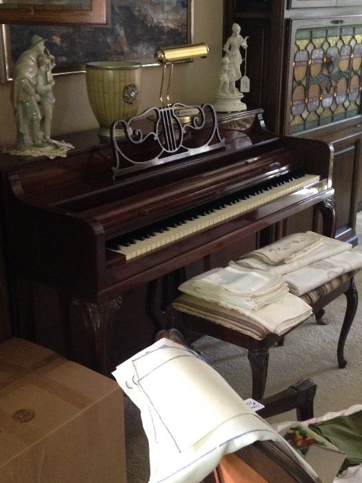 WE HAVE SOME REMARKABLE DECORATOR ITEMS IN THIS BEAUTIFUL GREAT NECK HOME MANY OF THESE ONE OF A KIND PIECES WERE PURCHASED IN UPSTATE NEW YORK # STAIN GLASS WINDOWS OUTSTANDING ....... FROM DIFFERENT CHURCHES # Small Hanging Rod Iron Lanterns # Small Decorative Rod Iron Fireplace # White Wood with Mirror Wall Hanging .....so lovely # Adorable Kitchen Chandelier......a must have # French Iron Coupe' Lamp # PERFECT & BEAUTIFUL..... Upright PIANO ...Sohmer & Co. New York ...... serial # 102895#32c # Classic Kitchen Table and 4 Rattan Chairs.......great condition # Dining Room Set ....beautiful in lay of wood.....extremely...