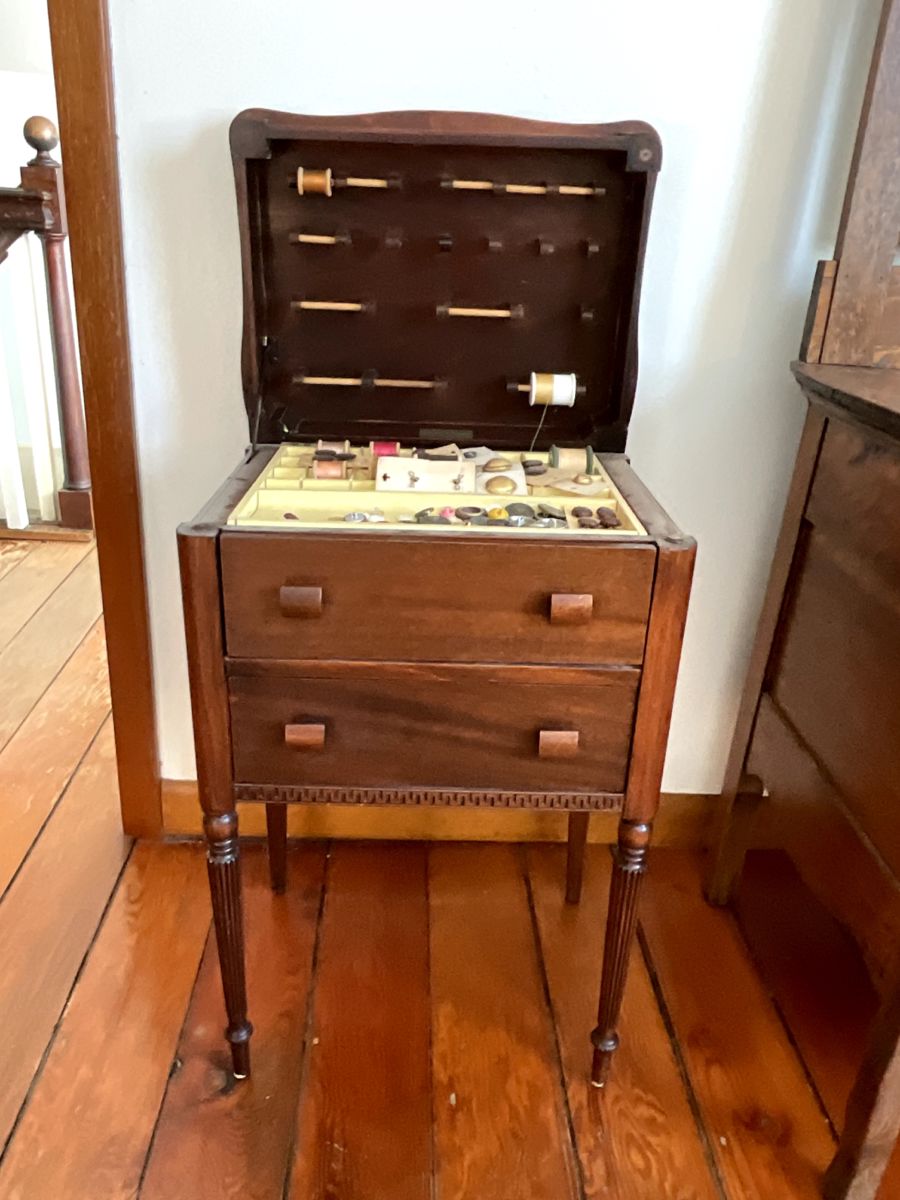 HIGHLIGHTS: Furniture: Punchpin pie safe Quartersawn oak 3 drawer cabinet Quartersawn oak full size bedframe Oak Dry sink-style vanity Perfect sewing cabinet Wooden rocking chairs Wooden dressers Wooden nightstands Wooden dry sink (modern) Spindle platform rocking chair Wooden standing floor mirror Wooden china hutch with glass doors Riverside white media cabinet Drop leaf dining table w/ 6 chairs Lifestyle tan modern sleeper sofa Kitchen: Mushroom salt and pepper shaker set Pink speckled stoneware china set Bonavita coffee maker Le Creuset casserole dish McCoy pink/blue striped mixing bowl Opalescent ceramic hors d'oeuvres tray Armor pots and pans CapeCod blue dutch oven...