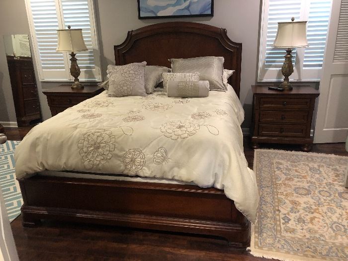 This is a clean home with quality furnishings. If you're looking for a bedroom set that makes a statement, you'll want to see this home! Beautiful round (white)pedestal dining table & 4 chairs from Coastal Living, leather tufted men’s arm chair, Legacy solid wood queen bedroom set includes chest and tall dresser w/ mirror, 2 nightstands, queen size poster bed, 2 dr Butler smokestand, oval coffee table, gorgeous marble top coffee table, nice side tables, sofa table, antique painted library table and stand, early immigrant’s trunk, antique settee, 2 very nice black contemporary desks, unusual vintage seashell collection, lg contemporary...