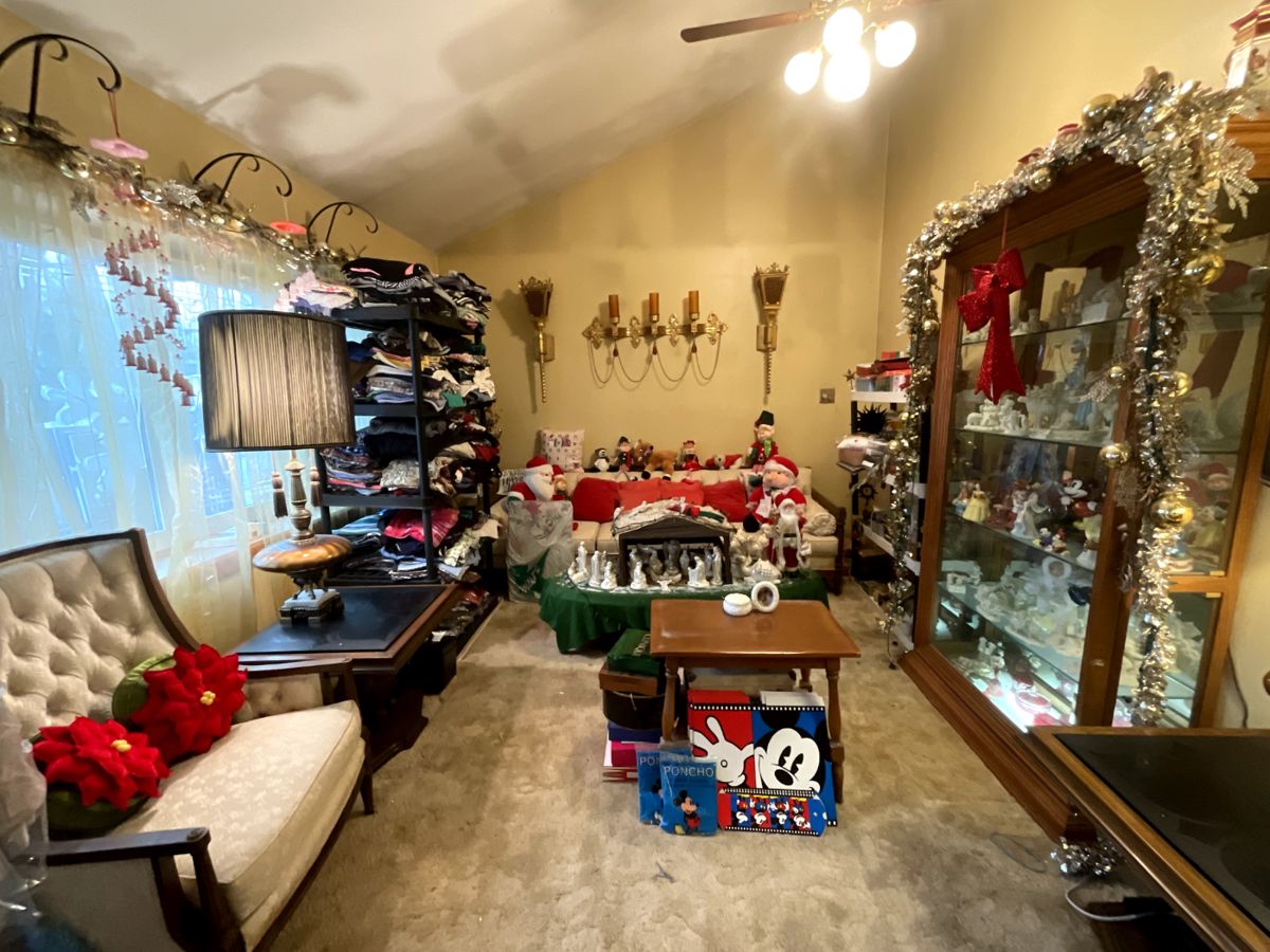 Packed house! Tons of new-with-tags clothing!! HIGHLIGHTS: Furniture: RPI Alumni Two-tone rocking chair Wood and glass two door lit curio cabinet Oak 5 shelf lit curio cabinet White upholstered couch and matching high back chair Vintage black tile/wood end tables w/ metal accents Gilded marble pedestal table Modern wrought iron coat rack Oak Arm chairs x2 Metal vanity w/ matching stool 4 piece queen size wooden bedroom set Rosalco wooden jewelry case Leather office chair 4 piece tray table set Lift top center table with storage (matching end tables) Dining room table with eight chairs Purses (Modern & Vintage): Nine...