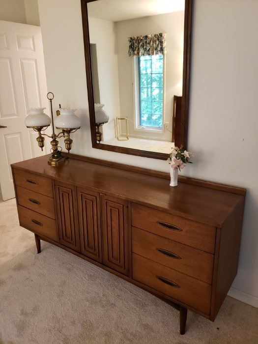 NICE SALE !! Mid century chests of drawers, dresser with mirror, night stand, King size head board, end tables, sofa/sofa beds, lamps, queen size beds, recliner, coffee table, chest of drawers and night stand, knee hole desk with chair, Mid century office chairs, side tables and coffee table, office desks, planter/divider, storage cupboard, dining table and chairs, Traditional dining table and 8 chairs, server, Mid century china cabinet, deck furniture to include chaises, chairs, dining table and chairs, red wood table and benches, rubbermaid out door storge units, much kitchen clutter, small appliances, Misc. glassware and china, mirrors, office supplies,...
