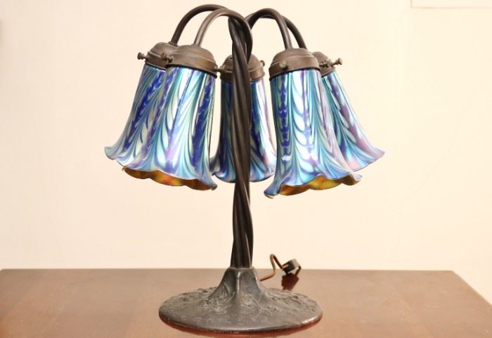 Trading Post Estate Sales is excited to present this fantastic auction from New Rochelle NY. This sale includes numerous MacKenzie Child's pieces, an incredible collection of Handel & Ulla Darni antique lamps, Hancock & Moore oxblood leather chesterfield furnishings, a large assortment of leather bags, cases and briefcases including Louis Vuitton, hand knotted rugs, executive desk, davenport desk, vintage vinyl record collection, cold painted bronze lamp, Judaica, original paintings & artwork, fine china, decorative arts and so much more...