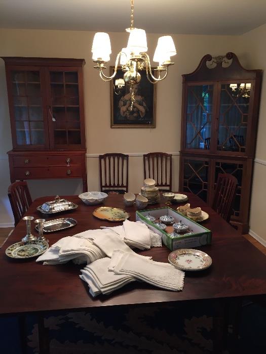 Quality not quantity! Sat. Aug 1st. 8 am - 4 pm. 12 Stuyvesant Rd. Pittsford 14534. Downsizing to senior living, homeowner has left behind some treasures. Chippendale style love seats, Chippendale 4 drawer dresser, Chinese Rug with dragon, Large room size oriental rug approx. 17’ x 10’, Heriz runner, other rugs, maple fall front desk, Ralph Avery drawing, Wallace Nuttings, many other paintings and prints, early dome topped box with shell inlay and drawer, hand tools, garage tools, WWII paratroopers foot locker, Chipp. style corner cupboard, Sm. corner cupboard, signed Hitchcock table and chairs, fancy hired hands bed, lamps, drop-leaf...