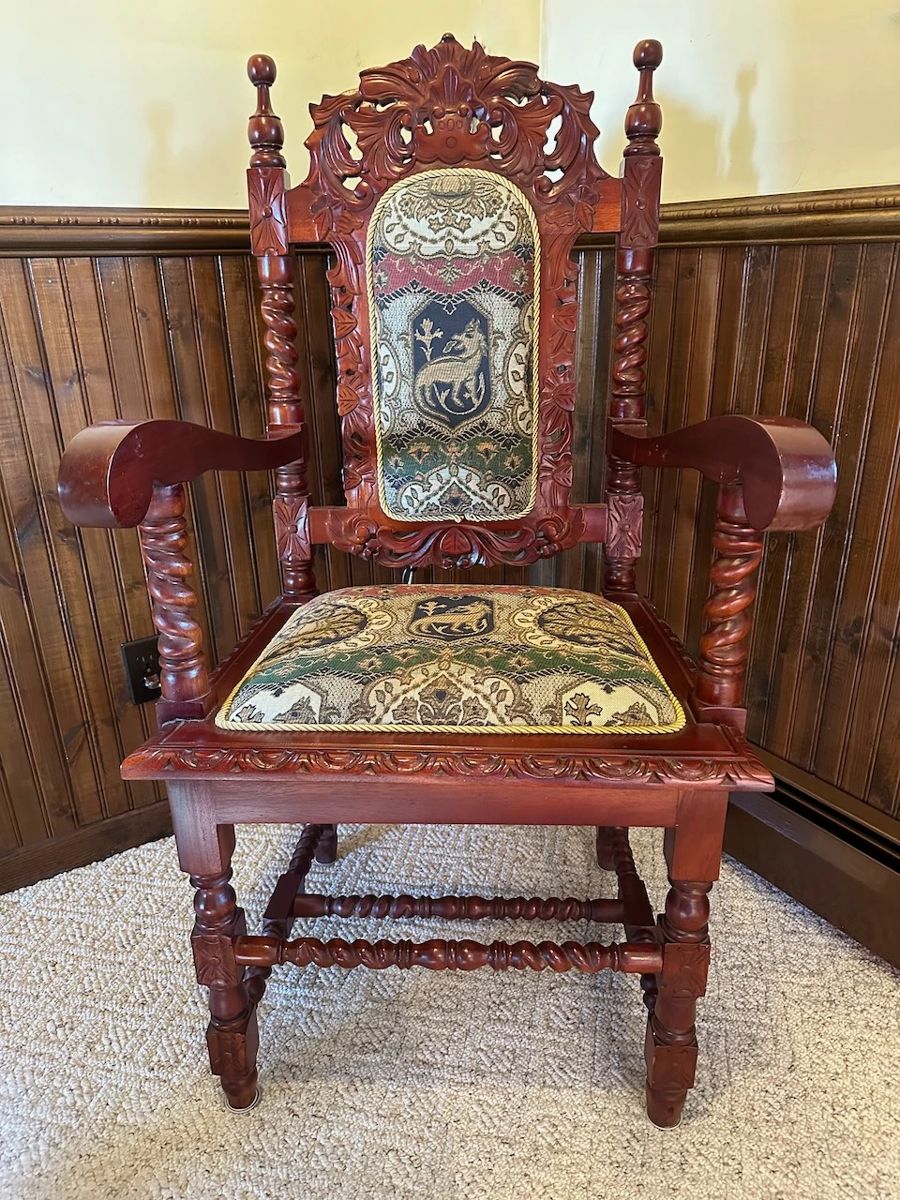 Design Tuscano Medieval Furnishings, Decor and More! Wednesday, OCTOBER 30th AUCTION begins to close at 7:35PM. Pick-Up in Poughkeepsie, NY on Sunday, November 3rd 1PM-4PM This is a Small But Mighty 33 lot sale! If you are into Medieval decor this is the sale for you!! The Lord Raffles Lion Throne Chair By Design Toscano, Historic Mahogany Monk's Bench By Design Toscano, Medieval Knight's Guard Armor Statue With Sword - 7 Feet Tall, Chinese Crossed Swords In Bronze Color Jeweled Sheaths, Lord Raffles Grande Hall Lion Leg Side Table By Design Toscano, Charles II Medieval Dining Armchair By Design Toscano,...