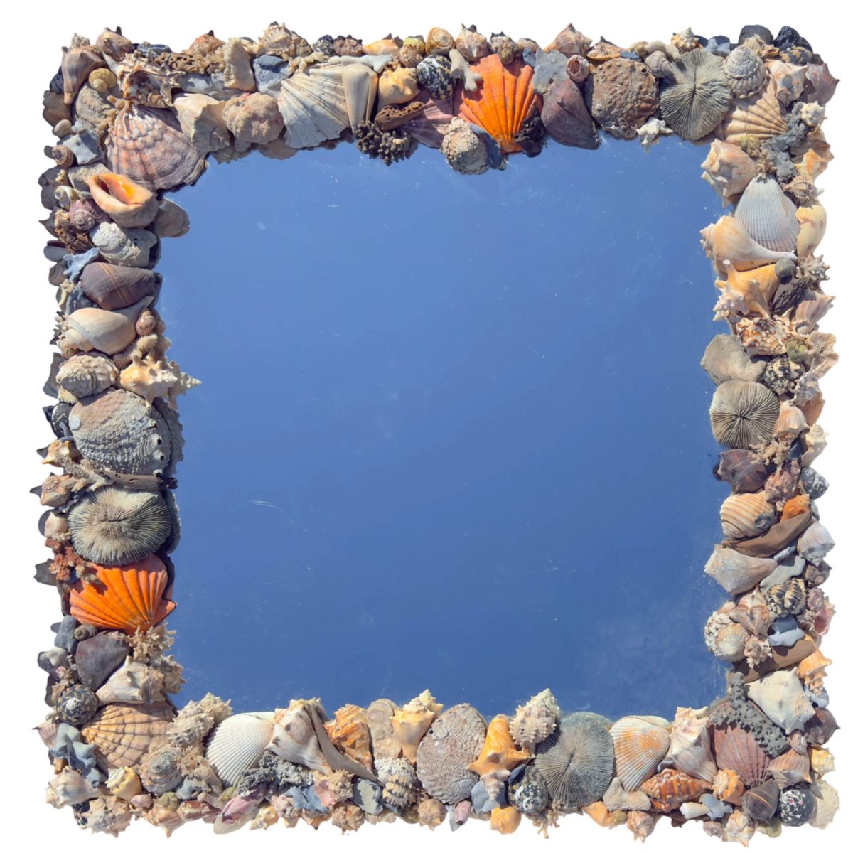 Murano Sculpture, Phenomenal 4' x 4' Natural Coral and Shell Framed mirror.