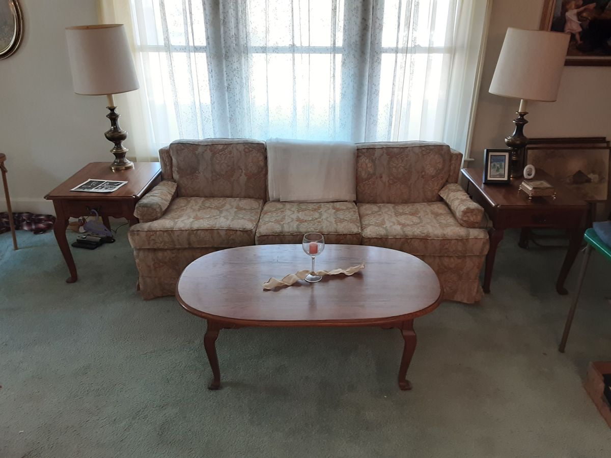 HIGHLIGHTS: Furniture: - Maddox colonial secretary desk - Knob creek coffee table and matching end tables - Nordic furniture teak dining room chairs - vintage pearl-wick storage hassock - Richardson Brothers 4 piece full size bedroom set - Kimball green upholstered victorian style chair - Singer sewing machine table - HON filing cabinet - Beecher falls dresser w/ mirror - Vintage handy table and chair set - mcm style sideboard - Victorian marble topped accent tables - plaid sleeper sofa - Vintage cosco step stool chair - 3 piece entertainment center - matching floral sofa and armchair - red patio...