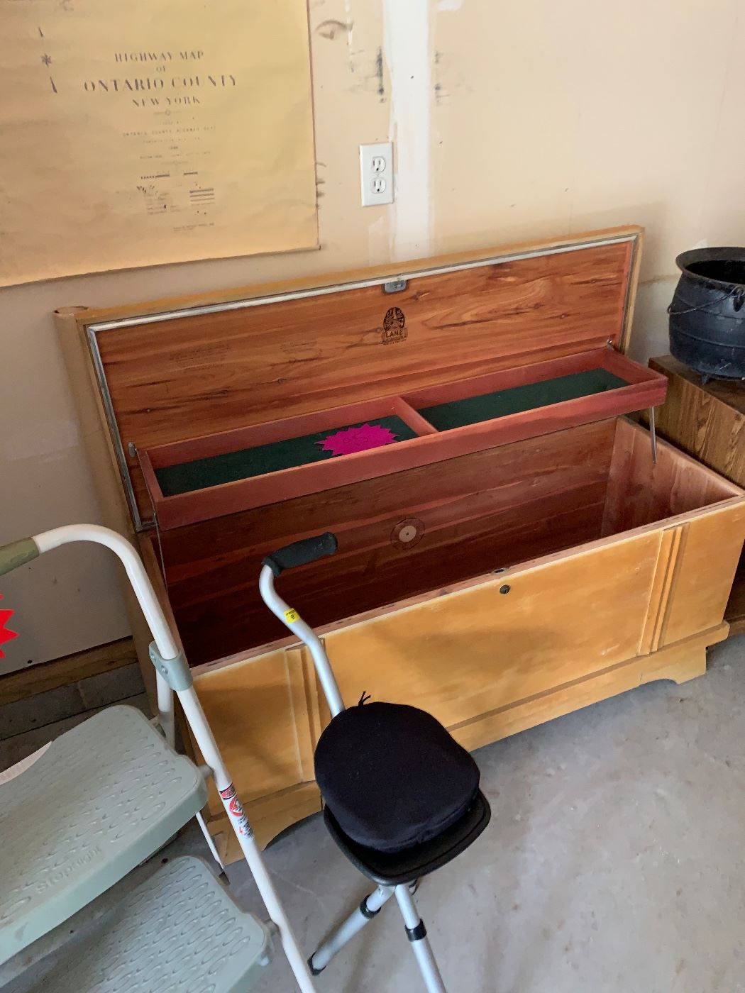 This nice ranch has some beautiful pieces. Old round table and 4 chairs, crocks, harmonicas. Double bed, 2 corner cabinets. Costume jewelry, small desk, gateleg antique table, vintage small clock, vaccum cleaner, garage items, kitchen items, Pyrex bowls , shredder and much more.