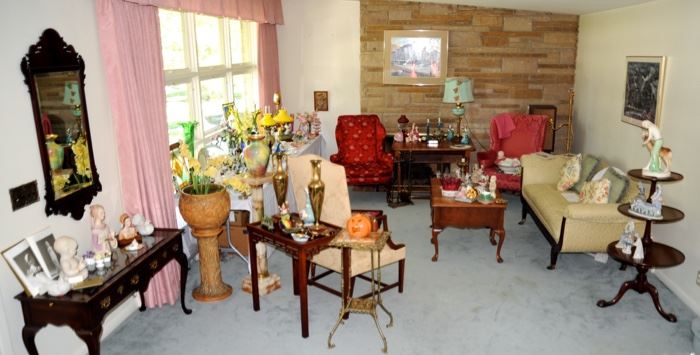 This beautiful home in Snyder has fine furnishings and beautiful collectibles. Kittinger arm chairs, Victorian settee and ladies arm chair. Mahogany and cherry occasional and drop-leaf tables, antique oak Jacobean dining room set with server, buffet and china cabinet, victorian iron chairs and planter, fine china, waterford crystal, silver, hummels, cranberry glass, Roseville jardiniere, pottery, antique lamps, stain glass, exquisite fine linens, early mirrors, watercolors and prints, needlepoint area rug, fabulous vintage clothing, hats and purses, board games, electronics, albums, movies, toys, great holiday items, vintage kitchenware, dolls and a basement that is full of treasures! Come to all five...