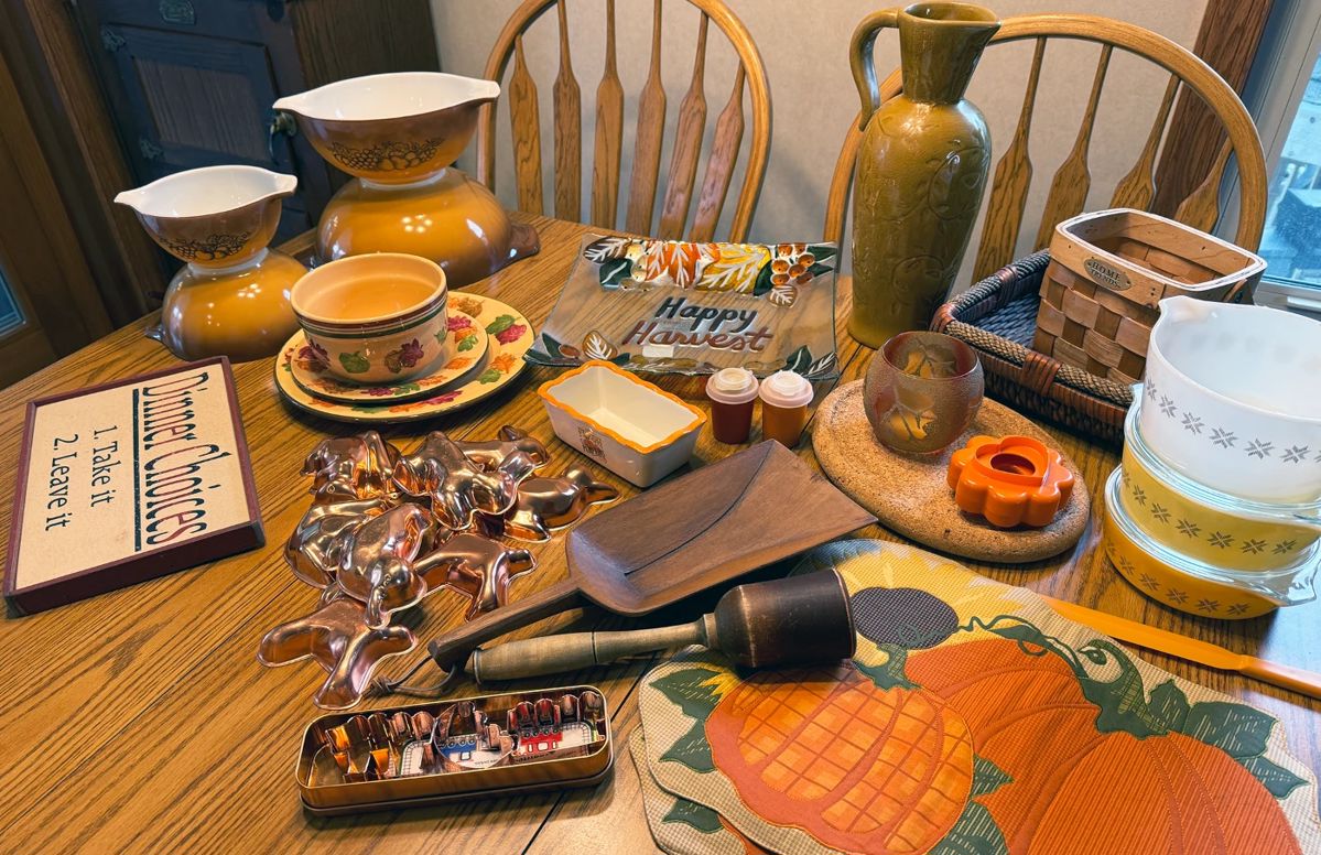 Sign-up sheet goes up when we arrive on Friday at 9ish or earlier. Fab late 1800s home with sunroom furniture, maple country kitchen table set, loads of housewares, yard and garden, decor and more! OF SPECIAL INTEREST: Guitar signed by Jim Kelly and band members of Sawyer Brown. Plus, a vintage trumpet and accordion. Loads of fun kitchenware, housewares, linens, clothes. King bed, single bed, dressers, child's dining set, sunroom furniture, lots of smaller furniture. Retro corner couch unit - perfect for your throwback 70s den! Vintage toys, corning French white, Tupperware, baking pans & cookie cutters for the holidays,...