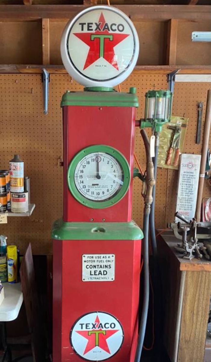 Saturday, Sunday, Monday 10-4. Numbers on Saturday at 8am or when we arrive. Discount day is Monday. Long time collectors of glassware and antique and vintage automotive. Rare and hard to find items. 1964 Corvair convertible under 40,000 miles, Vintage 1929 Martin & Schwartz Dual Clock Face Gasoline Pump Model 129 w/brass pump handle, 2 Ford Model A engine block w/crank shafts, 2 model A Fly wheels, Ford Model A Quail Radiator Cap, 1941 Chevy 6cyl engine block, Chevy hood ornaments including 1947, 1949-1950 1951-1952., Approximately 20 1960s through 1970s original Chevrolet dealership showroom posters size approx 32“ x 18“...