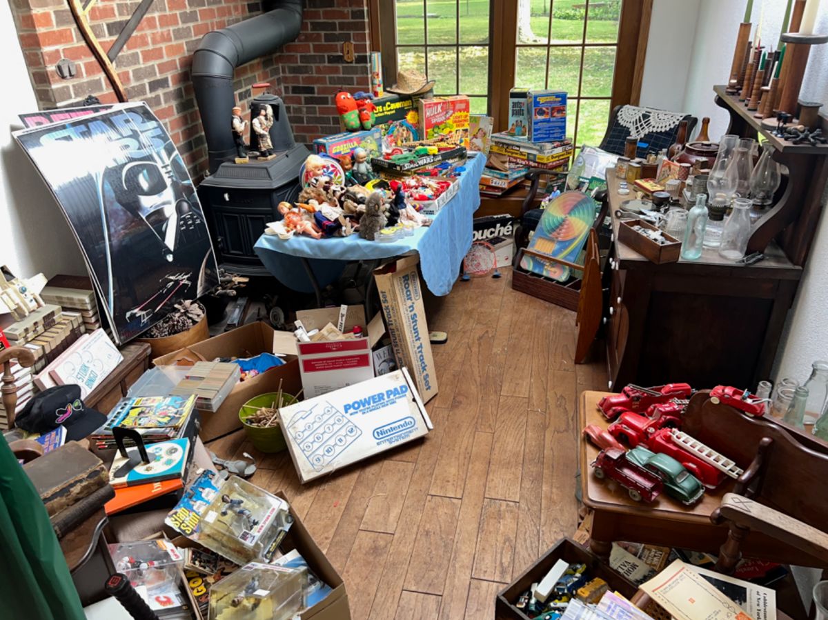 This smaller sale has some goodies! Early toys, games and sport collectibles, jewelry, primitives, vintage clothing, some jewelry, depression glass, art, advertising, Star Wars, piano , dolls, loads of tools and more! Come to all three of our Western New York sales this week: https://ednalouise.com/sales