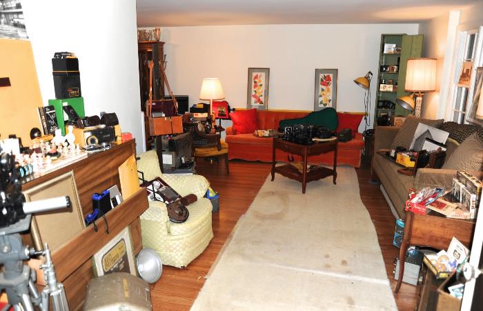 Incredible sale in the Town of Tonawanda. Top drawer professional photo equipment in large quantities including Mamiya C33, C220 and C330 TLRs with numerous lenses, Mamiya RB-67 medium format (6x7) SLRs with multiple lenses and film backs, vintage Nikon F, again with several Nikkor lenses, Omega view camera and vintage large format camera along with filters, equipment cases, tripods, flashes and other lighting gear. Into HFi gear? Marantz 3600 integrated amp, Dynaco Stereo 400 power amp, Infinity Monitor II loudspeakers, the telefunkiest Telefunken tabletop HI Fi, and scads of additional audio and video equipment. Amazing model kits in the boxes...