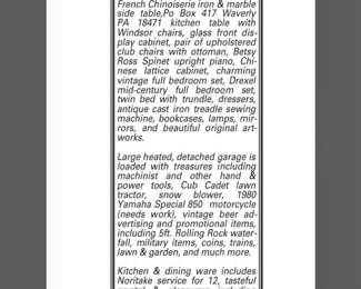 Quality Rome Estate Sale Fri & Sat Feb 6 & 7