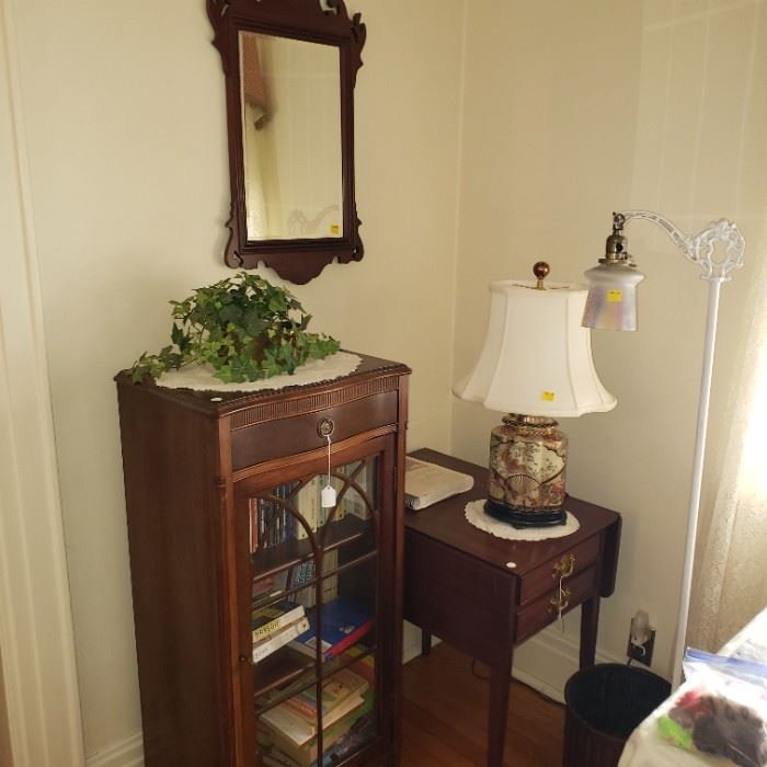 This South Utica Colonial is full of treasures. Top quality furniture and furnishings through out. Period furniture in tiger and birds eye maple, Hickory, and cherry. Pieces by Hinkel-Harris, Hickory Chair Co., Brandt, Stickley, Harden, Sanford and Henredon just to name a few. Multiple early one drawer stands, Pembroke drop leaf table, Drop leaf secretary desks, Harden gate leg dinner table, miniature Hoosier cabinet, porcelain top dinning table, a nice assortment of quality table and vintage floor lamps, full length dressing mirror plus other vintage wall mirrors, many occasional painted furniture piece including glass paneled cabinets, a very sharp Asian...