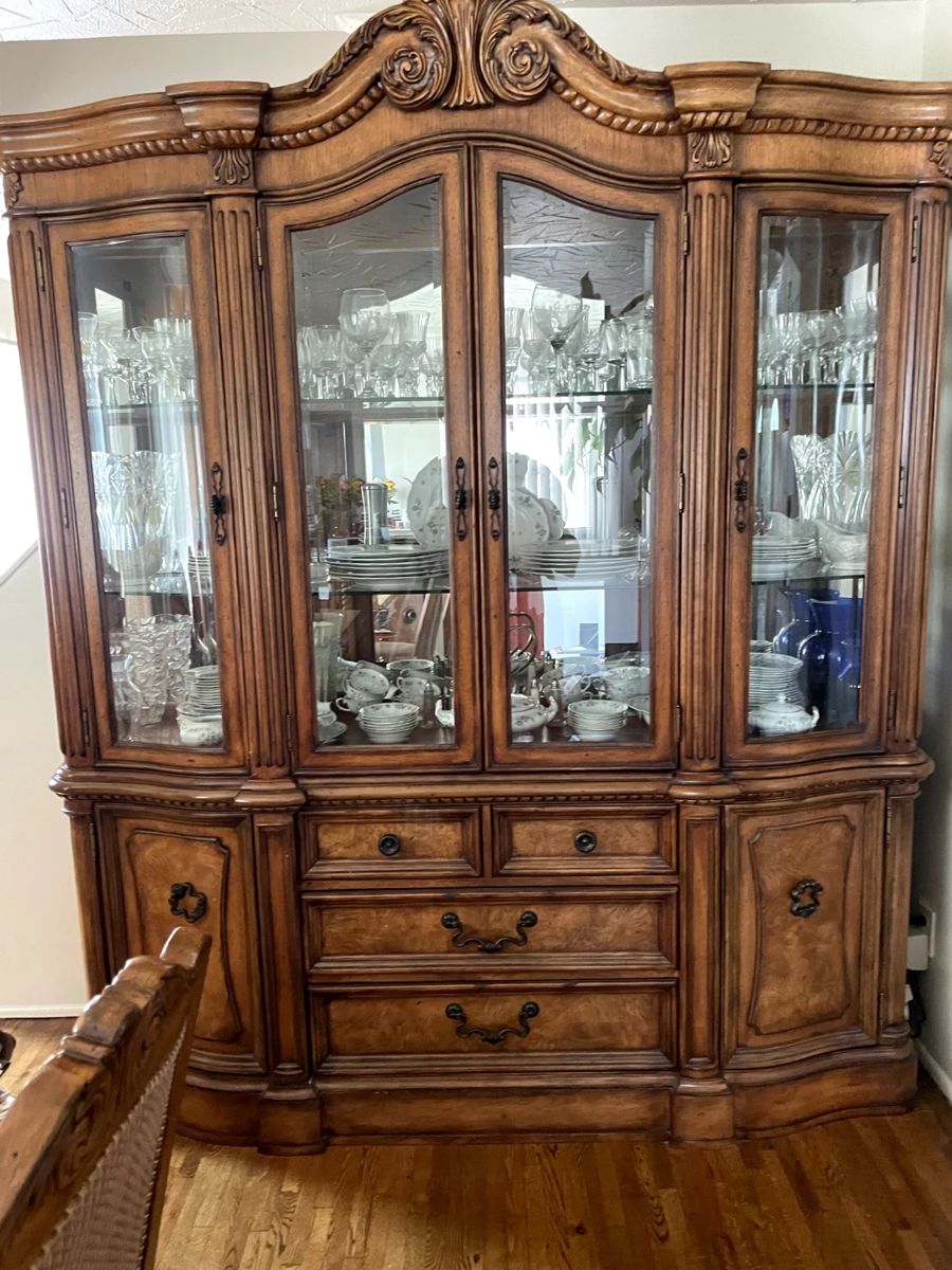 Women's clothing sizes (16-22) & (sizes large to 3x), Women's shoes, Designer Women's Fancy Hats (for Church, Synagogue, Tea Parties, Kentucky Derby, or just to stand out), Furniture, Queens size Heavy wood headboard/footboard, Sterns & Foster's firm mattress, Wood Dresser, Wood Chest, Walnut Curio Cabinet, Huge China Cabinet, Cherry Wood Office Desk and Hutch, Stemware, Crystal, China Expensive set, Vases by Mikasa, Lenox, etc, Household items, older model working dishwasher, older model stove, older model side by side refrigerator, office chair, HP printer fax, older model fax machine, old phones, King size wood bed frame with headboard and footboard, huge...