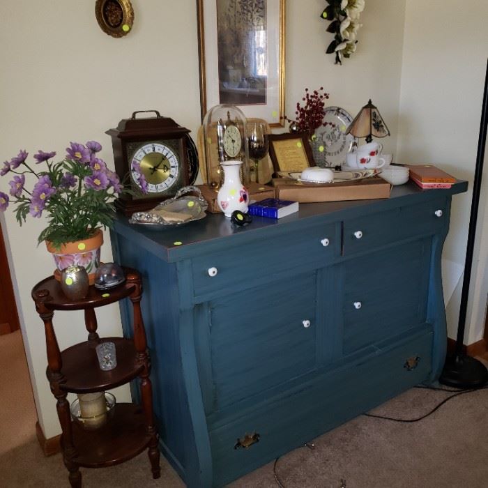 Countryside ranch full of surprises. Quality furniture and furnishing throughout including mid century, Victorian, painted and primitives plus many oak, maple, pine and cherry pieces. Comfortable country living room set, oak highboy and mirrored dresser. Variety of table lamps and hanging lighting fixtures. Nice assortment of estate and costume jewelry.. Assorted mantle clocks. A variety of numbered framed prints and other wall art pieces, wall mirrors plus a assorted books. Variety of brass, copper and plate silver pieces. NEW FIND...Rare, Leica D.R.P. Earnest Keith Wetzlar camera with extras.. Plus rare posters... Collectables including art glass, depression sets, fine stemwares, vintage...