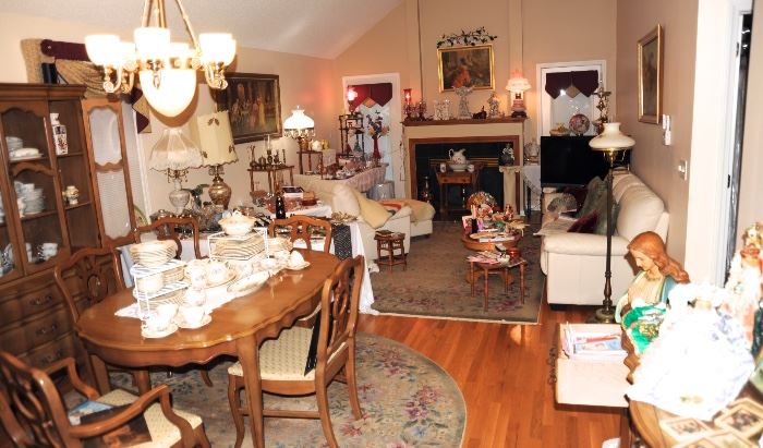 This newer West Seneca home features wonderful things from multiple generations and locations. The owner is moving to Texas and is leaving almost everything behind! Wonderful china, glass, furnishings, lots of jewelry, religious ephemera including a large Mary statue in nearly immaculate condition. We also have the biggest collection of vintage brass lamps you're likely to see, as our client repaired and refurbished antique lighting. Quality leather sofa and love seat, Cherry and Maple bedroom sets, Queen Anne dining room set, many occasional tables, stands, desks and bookcases, spinet piano, quality kitchenware including Revereware pan set in excellent condition, many...