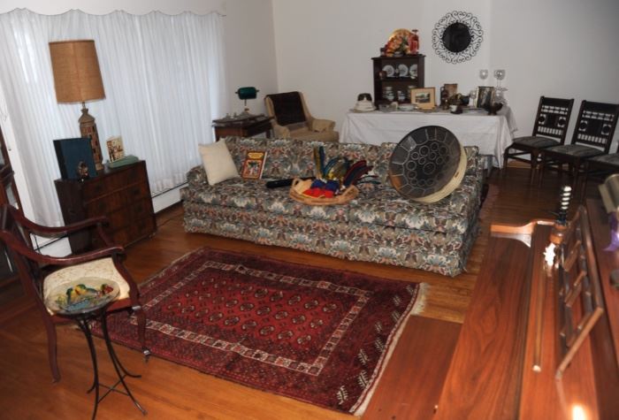 This split level home is spotless and filled with great art, music and interesting collections. Oriental rugs, antiques, Chippendale cherry highboy, spinet piano, knotty pine dining room set, early chairs and chests, models, china, pottery, silver, toys, primitives, African and Jamaican instruments, quilts, textiles, books, games, art, wine racks, tools including Rockler router table, great general housewares, GT Karakoram and Club Fuji bikes, WWII shipping crate, machinist tool chests and much miscellaneous! Come to all four of our Western New York sales this week: http://ednalouise.herokuapp.com/sales And be sure to have the Edna Louise iPhone app!