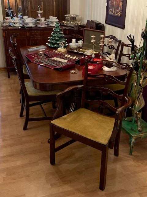 ESTATE SALE CLEARANCE 176 Caesar off Main St. between Brompton and Transit, Williamsville, N.Y. 14221 Saturday November 20th, 2021 10 to 4 Offered for sale at discounted prices is the balance of this 75 year accumulation including a traditional mahogany dining table and six matching chairs, oak and french style desks, tables and dressers, a Wurlitzer console organ, upholstered chairs and sofas, lamps, Metlox Poppytrail, Pfaltzgraff and other kitchenware, Pillsbury collectibles, fine china and glassware, ornate home decor, barware, woman's clothing and accessories, a nice cup and saucer collection, costume jewelry, table and bath linens, outdoor furniture and statuary, rugs,...