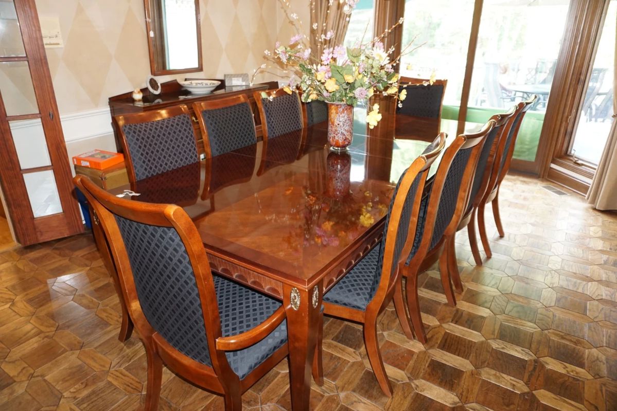 ESTATE SALE #1 30 Deer Run Ct. Williamsville, NY 14221 (Paradise to Wellingwood to Roxbury) Friday & Saturday September 20 & 21 9am-4pm SATURDAY; 9/21; 1/3 OFF!! Phenomenal Williamsville Estate Sale in Roxbury Park/Woodstream Farms with Top Quality Furniture & Décor!! Stunning 13 piece Stanley Dining room suite with granite top sideboard, china cabinet, gorgeous maquis top dining table, two leaves & 10 chairs. Lillian August claw foot leather top table, Drexel Heritage pair of upholstered chairs, two love seats, glass top & marble top tables, curio cabinet. Antique musical bird cages, marble & iron console table, Top quality leather...