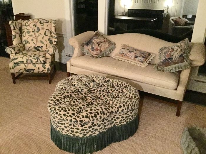 Beautiful 1920's Fairlawn Heights Home Owners Downsizing 2008 Infinity G37S- 1 owner-only 50,000 Miles!, Petrof piano, Lovely tan linen sofa, Tan side chair with teal pattern, 2 side chairs beautiful print or use the slip covers in tan with green print, Large carved wood desk with one drawer, 4 chairs with leather seats and nailhead trim, large tufted tan and green ottoman with fringed trim, Dining table - seats 12- with 6 chairs, and hidden storage drawers for flatware, 4 drawer antique dresser with mirror, 4 drawer chest, 4 large painted silk screens- Gorgeous, 2 white decorative columns, 2 matching...