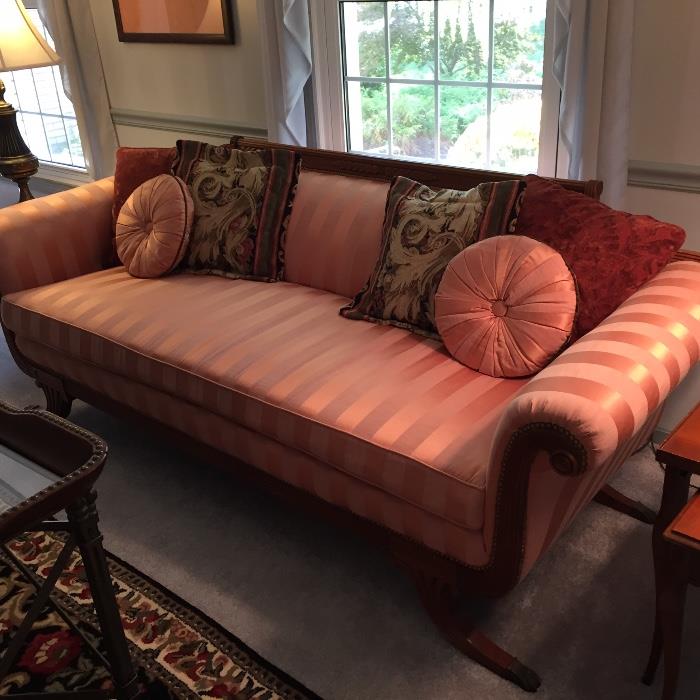 Selling contents of charming Bainbridge home. Featured are three generations of items including pieces from an old general store and doctors office Sir Christopher sterling flatware, Several other pieces of Sterling, Victorian doctors apothecary desk, Duncan Phyfe sofa, Cherry Queen Ann style dining table with six chairs leaves and pads, Cherry Queen Ann style sideboard, Handsome tan leather sofa, Piecrust table, Nesting, lamp and cocktail tables, Nao nativity set, Waterford and Lalique, Newer Sevres China, Giuseppe Armani mother and child sculpture, Pair of modern cabinets just perfect for stereo equipment, Lineage hunt board, Tile top kitchen table with three chairs,...
