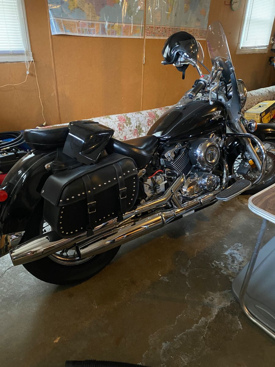 Large Estate Sale! Yamaha motorcycle, couch, chair, patio chairs, drop leaf table, vintage PYREX. lamps, tall dresser, mid century lucite grapes, records, aluminum Christmas tree. 2 closed entrainment stands (perfect for a coffee bar set up), twins bed. Lingerie dresser. sewing machine, cabbage patch telephone, small doll dressers. We are still setting the attic and finishing the garage. More photos to come next week.
