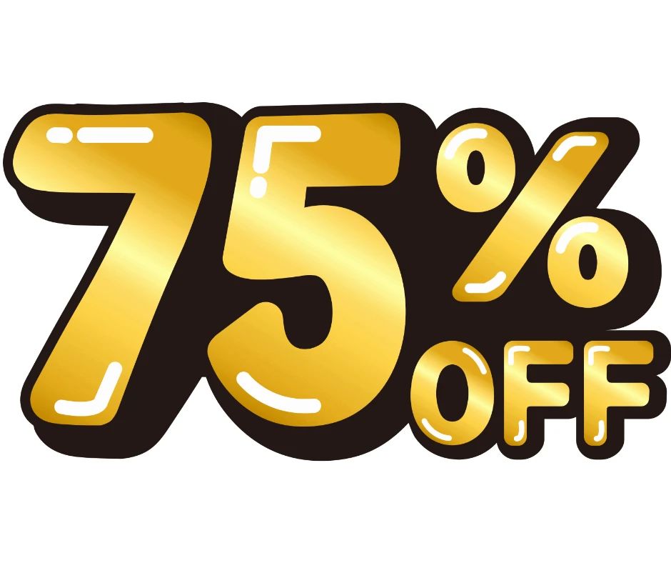 75% off most, some exclusions (for example: cash registers and some furniture items are excluded)