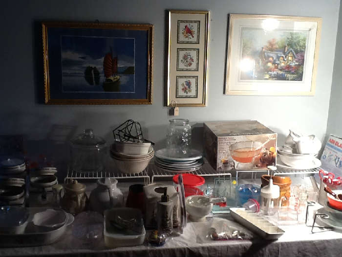 This large 5 bedroom house is full, along with the garage, basement and sunroom. There is an Asian inspired dinning room set, 5 desks, Several outdoor patio tables and chairs. Large Hon vertical Kitchen items, china, glassware, everyday dishes, pots and pans. Four tables full of costume jewelry. Bedding galore. Mens and womens clothing and shoes. Size small formals ideal for PROM- shoes too!! Durable medical equipment including wheel chairs, shower chairs, cane, walker, transfer board, etc. Aluminum ladders