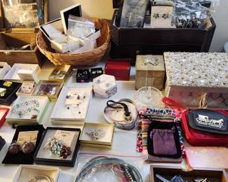 **Bins of holiday decor, artificial flowers, tools, black painted furniture, red furniture PLYMOUTH