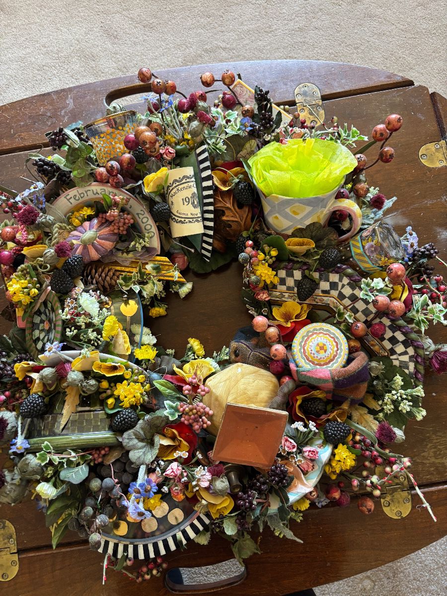 Mackenzie Childs wreath, electronics, sofas, recliners, bedroom furniture, artwork, linens, large clothing selection, cleaning and medical products, kitchenware, small appliances, entertainment center, home decor, dining room table and chairs, cabinets, daybed, bistro table and chairs, easy chairs, Christmas, Halloween decor, glassware, cat decor, lawnmower, snowblower, vintage bicycles, garage and basement items, sofa tables, end tables, outdoor items and lots, lots more!!